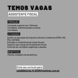 ATENÇÃO: Nunca pague nenhum valor para participar de um processo seletivo. Não compre cursos, apostilas ou serviços que prometam participação em seleção ou contratação para uma vaga. E jamais informe dados bancários, de cartão ou envie cópia de documentos e fotos/selfies por e-mail, WhatsApp, aplicativos de celular ou através de sites que não conheça.