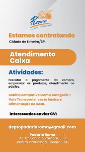 ATENÇÃO: Nunca pague nenhum valor para participar de um processo seletivo. Não compre cursos, apostilas ou serviços que prometam participação em seleção ou contratação para uma vaga. E jamais informe dados bancários, de cartão ou envie cópia de documentos e fotos/selfies por e-mail, WhatsApp, aplicativos de celular ou através de sites que não conheça.
