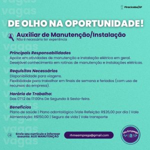 AUXILIAR DE MANUTENÇÃO/ INSTALAÇÃO