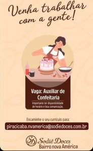 CONTRATA-SE AUXILIAR DE CONFEITARIA