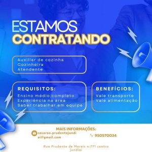 ATENÇÃO: Nunca pague nenhum valor para participar de um processo seletivo. Não compre cursos, apostilas ou serviços que prometam participação em seleção ou contratação para uma vaga. E jamais informe dados bancários, de cartão ou envie cópia de documentos e fotos/selfies por e-mail, WhatsApp, aplicativos de celular ou através de sites que não conheça.