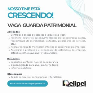 ATENÇÃO: Nunca pague nenhum valor para participar de um processo seletivo. Não compre cursos, apostilas ou serviços que prometam participação em seleção ou contratação para uma vaga. E jamais informe dados bancários, de cartão ou envie cópia de documentos e fotos/selfies por e-mail, WhatsApp, aplicativos de celular ou através de sites que não conheça.
